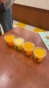 私も温泉街でみかんを丸ごと包んだレアチーズケーキや、みかんの飲み比べをしたりして堪能しました・*+